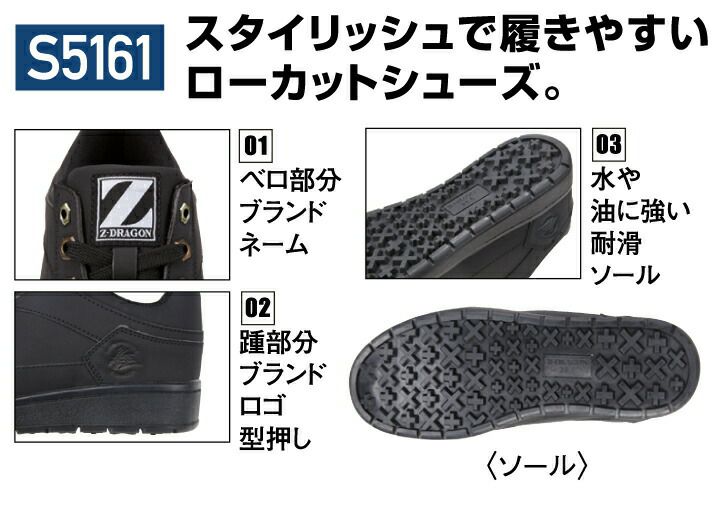 他の画像を見る スタイリッシュで履きやすいセーフティーシューズ。 Z-DRAGON 安全靴 S5161 ローカット 耐滑 男女ペア メンズ レディース スチール先芯 紐タイプ セーフティーシューズ かっこいい 作業靴 自重堂 本体価格 ¥ 2,640 税込 カートに入れる お気に入りに登録する