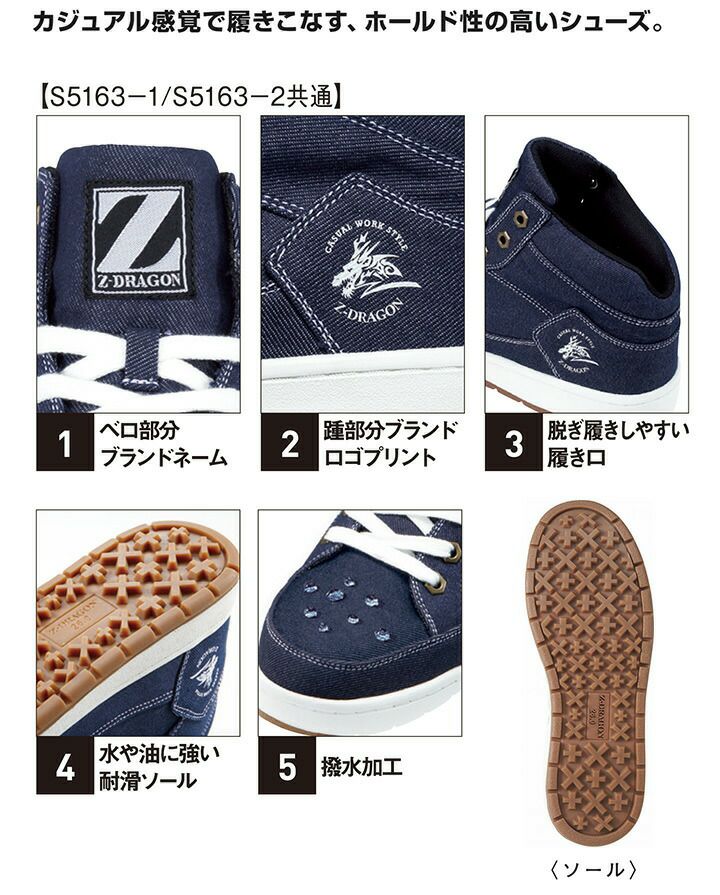 他の画像を見る カジュアル感覚で履きこなす、ホールド性の高いシューズ。 Z-DRAGON 安全靴 セーフティシューズ S5163-1 ハイカット 耐滑 撥水 メンズ レディース 男女ペア 紐タイプ 自重堂 作業靴 本体価格 ¥ 2,975 税込 カートに入れる お気に入りに登録する