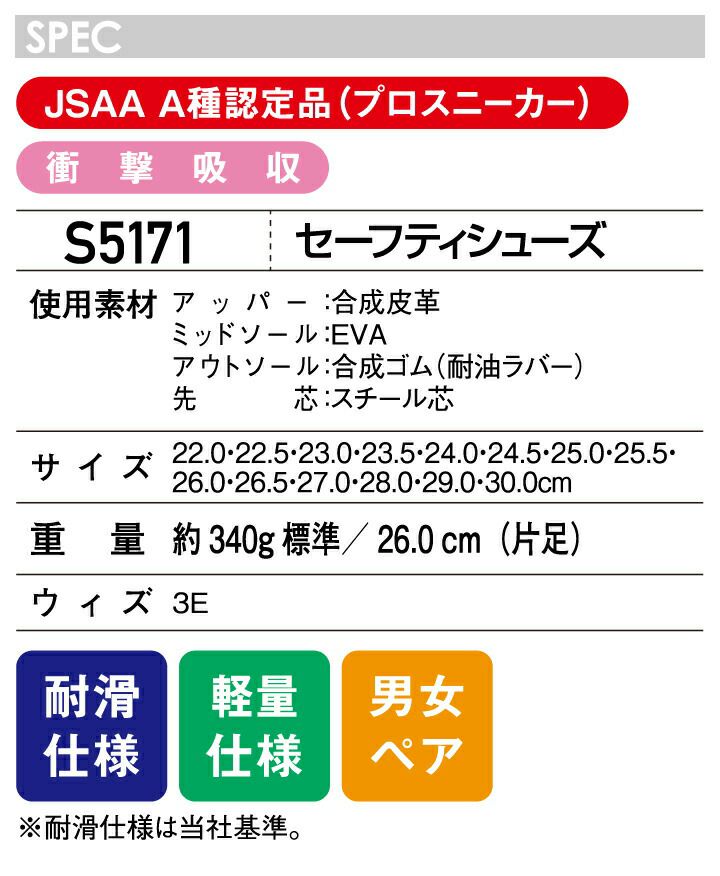 他の画像を見る 高機能セーフティシューズ。 安全靴 セーフティシューズ S5171 JSAA A種認定品 プロスニーカー 衝撃吸収 耐滑 軽量 男女ペア メンズ レディース フィールドメッセージ 自重堂 作業靴 紐タイプ 本体価格 ¥ 2,860 税込 カートに入れる お気に入りに登録する