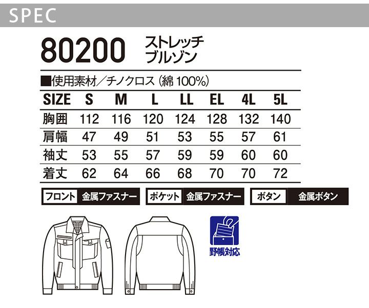 他の画像を見る 洗練されたデザインが、ワークシーンを変える。防縮防シワ加工が、縮みにくく、シワになりにくい優れたイージーケア性と、ソフトな風合いを実現。 ストレッチブルゾン 自重堂 80200 メンズ 秋冬 綿100% 防縮防シワ加工 作業服 作業着 ジャンパー ジャケット 定番【4L-5L】 本体価格 ¥ 5,610 税込 カートに入れる お気に入りに登録する