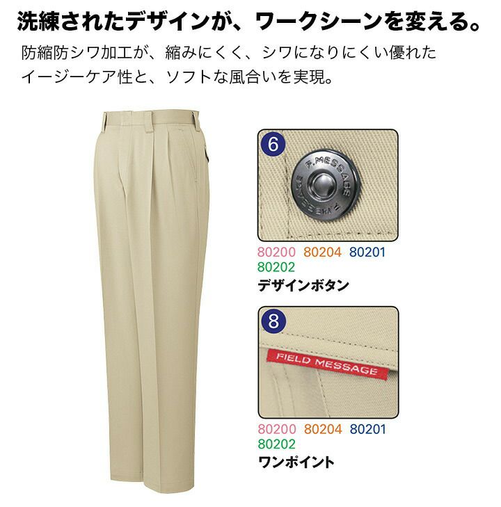 他の画像を見る 洗練されたデザインが、ワークシーンを変える。防縮防シワ加工が、縮みにくく、シワになりにくい優れたイージーケア性と、ソフトな風合いを実現。 ストレッチツータックパンツ 自重堂 80201 男性用 メンズ 秋冬 年間 通年 オールシーズン 綿100% 防縮防シワ加工 作業服 作業着 ズボン スラックス定番【70-88】 本体価格 ¥ 3,300 税込 カートに入れる お気に入りに登録する