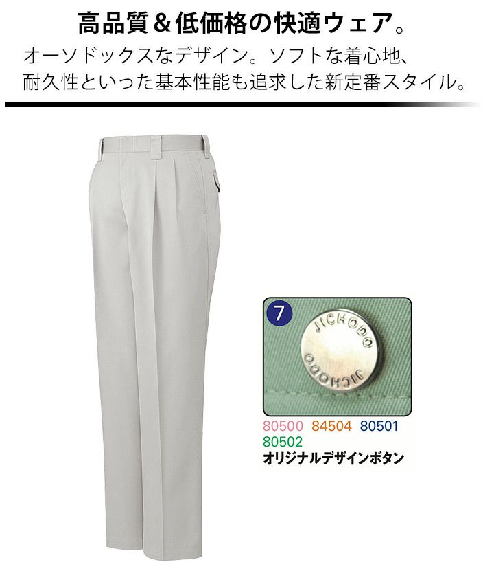 他の画像を見る ソフトな着心地、耐久性といった基本性能も追求した新定番スタイル。 ツータックパンツ 自重堂 80501 男性用 メンズ 秋冬 帯電防止 作業服 作業着 定番 ズボン スラックス【70-88】 本体価格 ¥ 3,090 税込 カートに入れる お気に入りに登録する