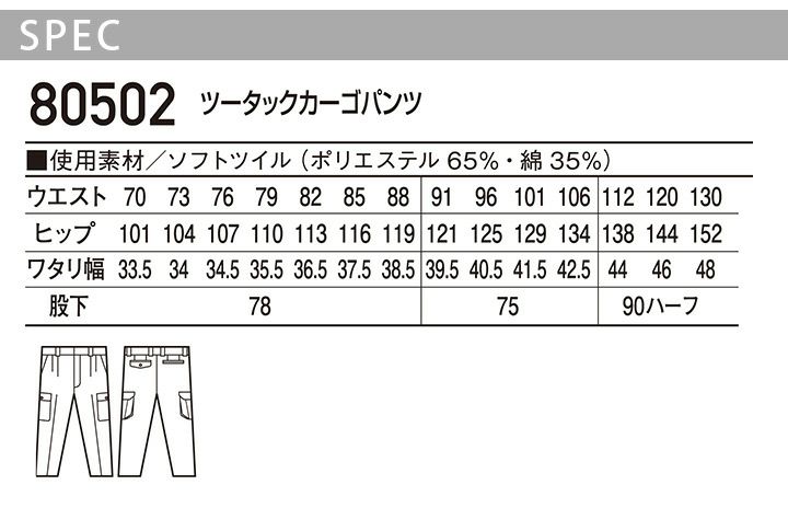 他の画像を見る ソフトな着心地、耐久性といった基本性能も追求した新定番スタイル。 ツータックカーゴパンツ 自重堂 80502 男性用 メンズ 秋冬 帯電防止 作業服 作業着 定番 ズボン【112-130】 本体価格 ¥ 3,690 税込 カートに入れる お気に入りに登録する