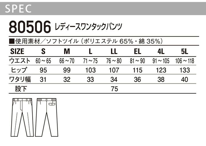 他の画像を見る ソフトな着心地、耐久性といった基本性能も追求した新定番スタイル。 レディースワンタックパンツ 自重堂 80506 女性用 レディース 秋冬 帯電防止 作業服 作業着 定番 ズボン スラックス【S-LL】 本体価格 ¥ 2,790 税込 カートに入れる お気に入りに登録する