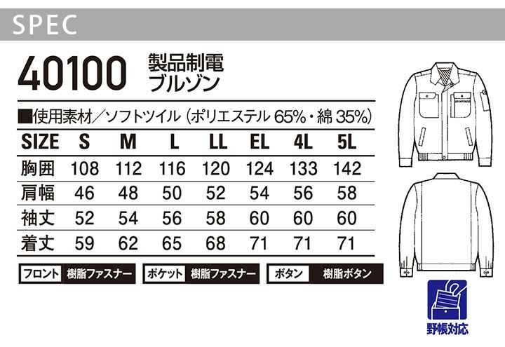 他の画像を見る 優れた耐久性と製品制電、気軽に着られるリーズナブルなプライスが魅力です。 長袖ブルゾン 製品制電 自重堂 40100 メンズ 男性用 帯電防止 オールシーズン 年間 秋冬 作業服 作業着 ジャケット ジャンパー【4L-5L】 本体価格 ¥ 5,520 税込 カートに入れる お気に入りに登録する