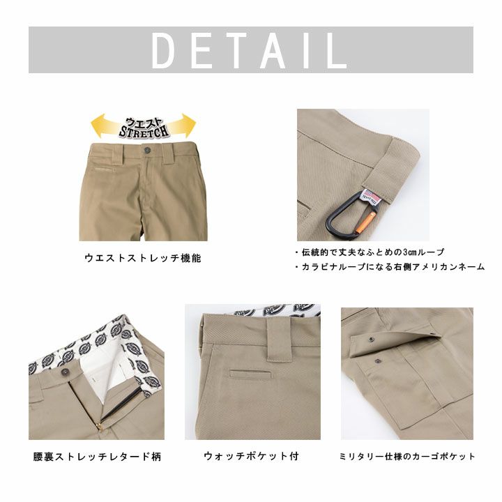 他の画像を見る Dickies100周年記念モデル。 独自シルエットでディテールにもこだわった、ワークにもカジュアルにも活躍するチノ。 ディッキーズ Dickies D-2874 T/Cストレッチ オールドスタイル ストレートパンツ 秋冬 男女兼用 メンズ レディース 作業着 作業服 パンツ テーパード ストレッチ ワーク カジュアル ネイビー ブラック カーキ アーミー 本体価格 ¥ 4,378 税込 カートに入れる お気に入りに登録する