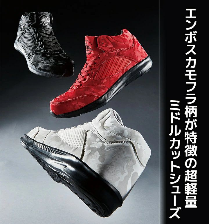 他の画像を見る エンボスカモフラ柄が特徴の超軽量ミドルカットブーツ。 安全靴 ハイカット Z-DRAGON S5213 超軽量 衝撃吸収 迷彩柄 カモフラ かっこいい セーフティーシューズ 作業靴 おしゃれ 自重堂 本体価格 ¥ 2,830 税込 カートに入れる お気に入りに登録する