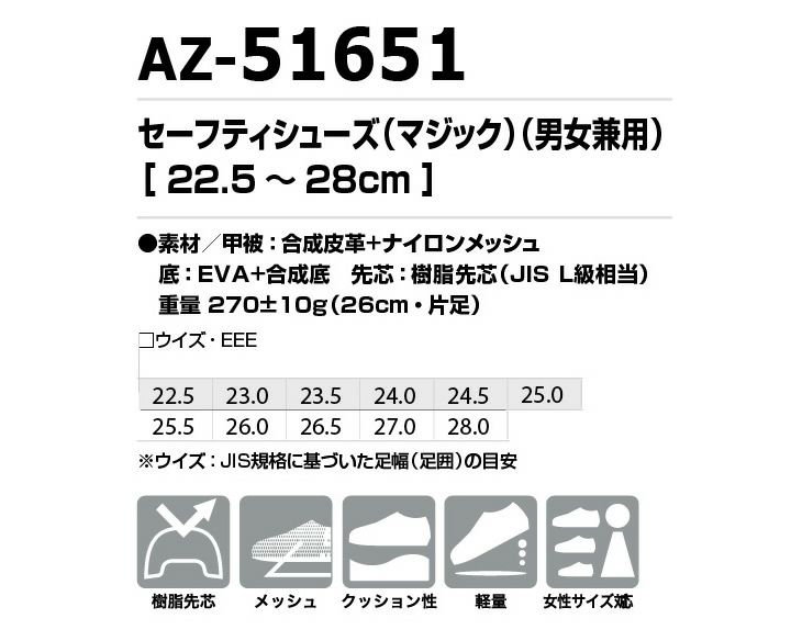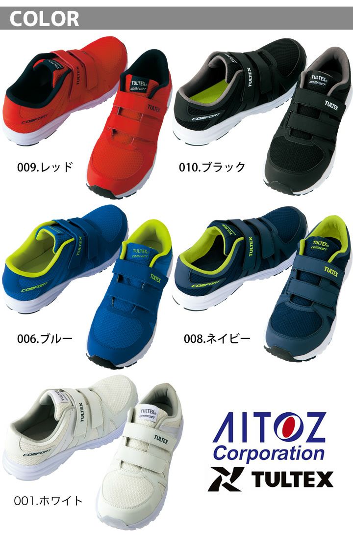 他の画像を見る 素早く確実な着脱が可能なマジックタイプ。軽作業に幅広く活用できる超軽量モデル。 安全靴 アイトス AZ-51651 TULTEX 超軽量 通気性 樹脂製先芯入り 男女兼用 メンズ レディース マジックテープ ローカット セーフティーシューズ 作業靴 本体価格 ¥ 3,520 税込 カートに入れる お気に入りに登録する
