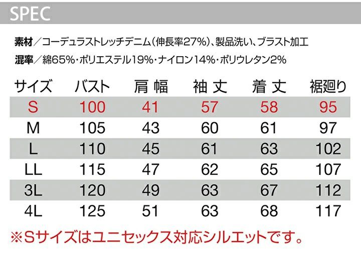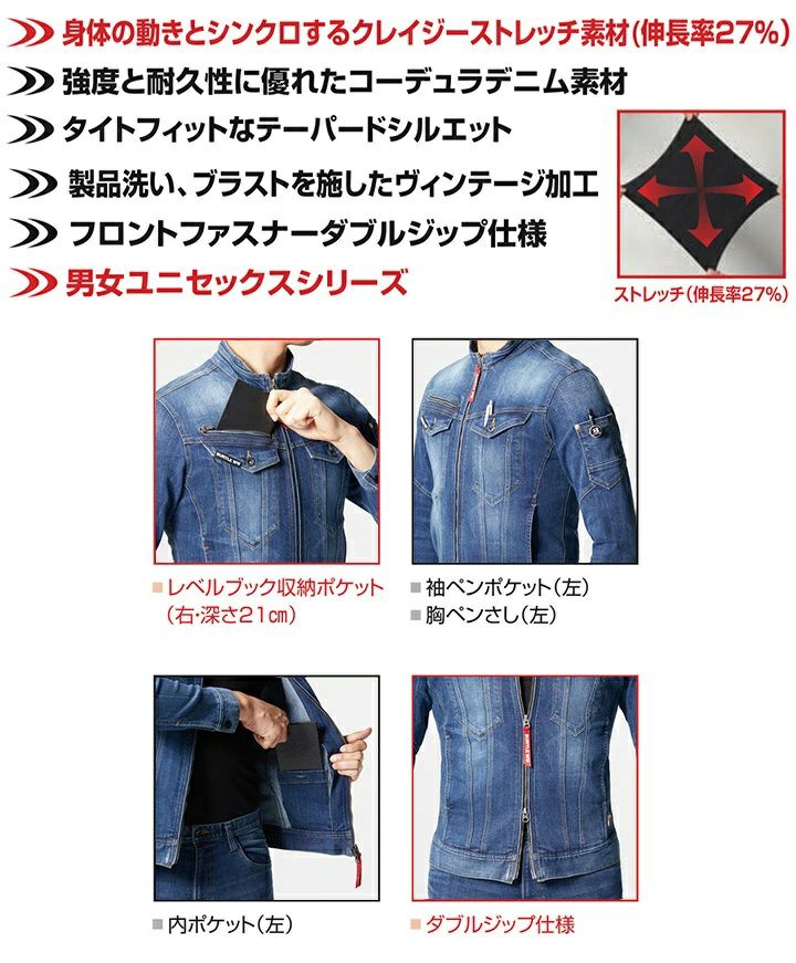 他の画像を見る 強度と耐久性に優れたコーデュラストレッチデニムを用いたジャケット。細身なテーパードシルエットのダブルジップ仕様。 バートル ジャケット 5001 デニム 秋冬 ストレッチ 男女兼用 メンズ レディース ブルゾン ジャンパー 作業服 作業着 5001シリーズ BURTLE 人気 おしゃれ カッコイイ【4L】 本体価格 ¥ 5,390 税込 カートに入れる お気に入りに登録する