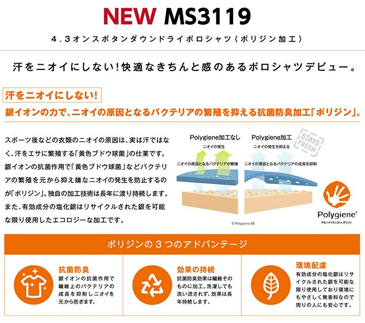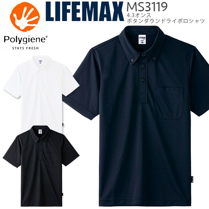 他の画像を見る 汗をニオイにしない!きちんと感のあるポロシャツ! 半袖ポロシャツ 抗菌 防臭 ボタンダウン ドライ MS3119 4.3OZ 消臭 春夏用 無地 作業着 作業服 男女兼用 レディース メンズ 吸水速乾 UVカット 紫外線対策 銀イオン スポーツ ゴルフ ユニフォーム 制服 汗 におい ボンマックス LIFEMAX【メール便送料無料※代引不可】 本体価格 ¥ 1,650 税込 カートに入れる お気に入りに登録する