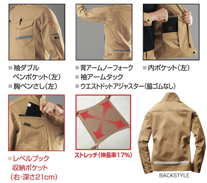 他の画像を見る ハードな動きに対応する快適ストレッチ素材シリーズ。高視認リフレクターの装着で夜間作業にも対応! バートル 長袖ジャケット 9071R 反射 男女兼用 メンズ レディース 制電 細身 BURTLE【秋冬】ブルゾン ジャンパー 作業服 作業着 9071Rシリーズ【3L】 本体価格 ¥ 4,620 税込 カートに入れる お気に入りに登録する