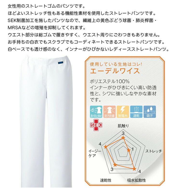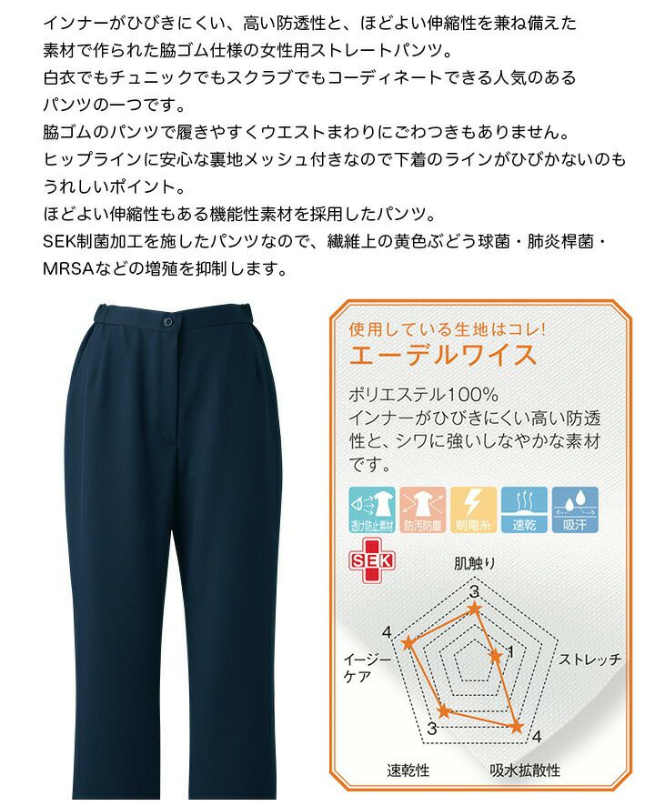 他の画像を見る 程よいストレッチ性もある機能性素材を使用したストレートパンツです。 【メール便送料無料※代引不可】ストレートパンツ(総ゴム)レディース フォーク 6007EW 女性用 ズボン 吸汗 制菌 医療 看護師 ナース 医師 医者 病院 制服 FOLK【S-4L】 本体価格 ¥ 5,500 税込 カートに入れる お気に入りに登録する