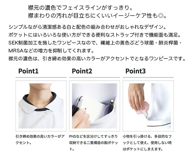 他の画像を見る 襟元の濃色でフェイスラインがすっきり。襟まわりの汚れが目立ちにくいイージーケア性も○ ワンピース 3015EW レディース 制菌 制電 透け防止 防汚防塵 吸汗 医療 看護師 病院 クリニック 歯科 制服 フォーク FOLK【S-4L】 本体価格 ¥ 7,245 税込 カートに入れる お気に入りに登録する