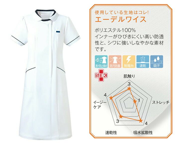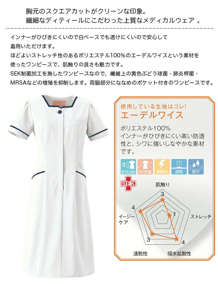 他の画像を見る インナーがひびきにくい高い防透性とほどよい伸縮性を兼ね備えたワンピース。 ワンピース 3017EW レディース 制菌 制電 透け防止 防汚防塵 吸汗 医療 看護師 病院 クリニック 歯科 制服 フォーク FOLK【SS-4L】 本体価格 ¥ 7,005 税込 カートに入れる お気に入りに登録する